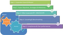 Products & Services Our Services include providing consultancy to organizations in any or all of the 6 steps to achieving organizational planning and corporate strategies. All the good planning and strategies are still not going to be useful unless they are systematically cascaded down to everyone within their key performance indicators and measures. Our consultancy and training methodology ensures that this is achieved with the least effort and in the most practical way. Our Products include the software tools to help easily monitor and measure individual achievements and corporate performances with useful charts and graphical depictions. All measures are systematically linked based on true cascading algorithms, which automatically calculate everyone's scorecard for performance. Included within is the bonus merit/demerit system which helps to flag up over-achievers, as well as flag out non-compliances.
